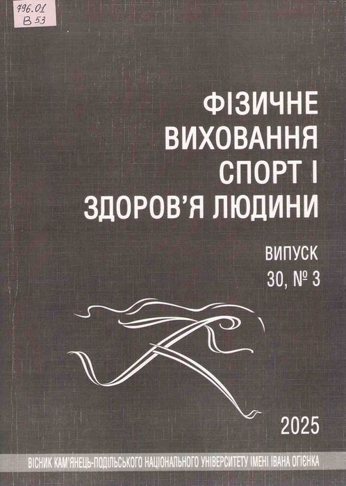 Вісник Кам’янець-Подільського національного університету імені Івана Огієнка : наук. вид. / Кам’янець-Поділ. нац. ун-т ім. Івана Огієнка; гол. ред. Г. А. Єдинак. – Кам’янець-Подільський : Панькова А. С., 2008. – Вип. 30 : Фізичне виховання, спорт і здоров’я людини, № 3. – 2025. – 52 с.
