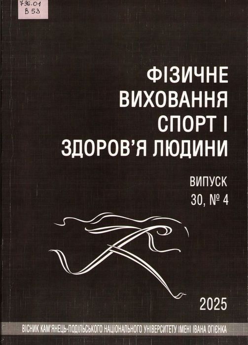 П1039-30(4)(2025) 796.01 В53 Вісник Кам`янець-Подільського національного університету імені Івана Огієнка : наук. вид. / Кам`янець-Поділ. нац. ун-т ім. Івана Огієнка; гол. ред. Г. А. Єдинак. – Кам`янець-Подільський : Панькова А. С., 2008. – Вип. 30 : Фізичне виховання, спорт і здоров`я людини, № 4. – 2025. – 52 с. У віснику висвітлюються результати наукових досліджень з актуальних проблем, що пов’язані з педагогічними аспектами фізичного виховання різних груп населення, валеології, ерготерапії, підготовки спортсменів та менеджменту у фізичній культурі. Матеріали друкуються в авторській редакції.