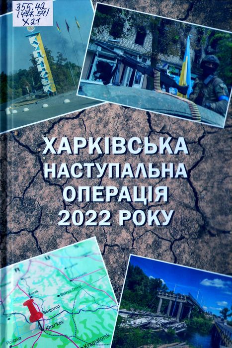 Б52706 355.42(477.54) Х21 Харківська наступальна операція 2022 року : воєнно-іст. нарис / І. Г. Євсєєв, В. Р. Мараєв, О. Л. Скрябін [та ін.] ; Наук.-дослід. центр гуманіт. проблем ЗСУ, Громад. орг. «Воїни добра». – Харків : 7БЦ, 2025. – 112 с. : фот. Видання підготовлено з метою поширення знань про війну за Незалежність України, зокрема Харківську наступальну операцію 2022 року. Воєнно-історичний нарис адресується командирам (начальникам), фахівцям структур психологічної підтримки персоналу Збройних Сил України, а також усім, хто цікавиться воєнною історією України.