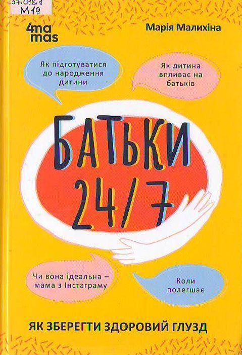 Б52506 37.018.1 М19 Малихіна М. С. Батьки 24/7. Як зберегти здоровий глузд / М. С. Малихіна. – Харків : Основа, 2025. – 127 с. : табл. – (Для турботливих батьків). Це дуже вчасна й важлива книга про те, як вижити батькам, коли в родині відбуваються глобальні зміни – народжуються діти. Авторка – професійний психолог – мудро і майстерно відповідає на найактуальніші запитання, аналізує взаємини в сім’ї з їхніми стресами та радощами. Рекомендує прості й зрозумілі дії, які реально допоможуть чітко розподілити ролі, вчасно знаходити допомогу, швидко адаптуватися, упоратися з рутиною, втомою, емоціями, важливими і не дуже справами.