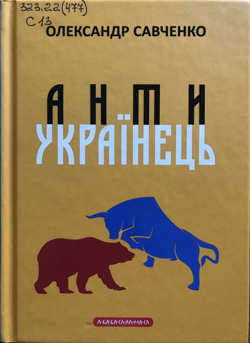 Б50196 323.22(477) С13 Савченко О. В. Антиукраїнець, або Воля до боротьби, поразки чи зради / О. Савченко. - Київ : Самміт-книга, 2017. - 120 с. Книга відомого вченого, економіста, громадського діяча, проф. Олександра Савченка присвячена вирішенню найскладніших соціально-економічних проблем України та українців. По-новому трактуючи ключoві моменти історії України, aвтор доходить висновку, що тисячолітня еволюція українського суспільства створила не лише українських героїв, a й їхніх антиподів, антиукраїнців, до яких О. Савченко відносить «малоросів», «хохлів», прихильників Московсько-православної цивілізації, а також корупційну українську еліту. Автор надає конкретні рекомендації українцям, як зробити Україну успішною, а себе — заможними. Книга стане у пригоді мислячим громадянам, і не лише їм: адже зараз Україна займає центральне місце в поки що гібридній війні цивілізацій. Успіх України має заспокоїти Росію — вкрай агресивну державу, — причому для її ж користі. Поразка України може відродити Імперію Зла, проти якої діяльність ІДІЛ здаватиметься дитячою забавкою.