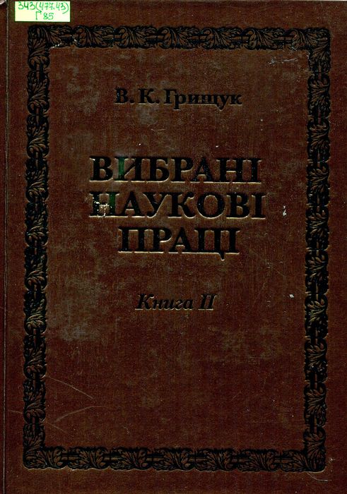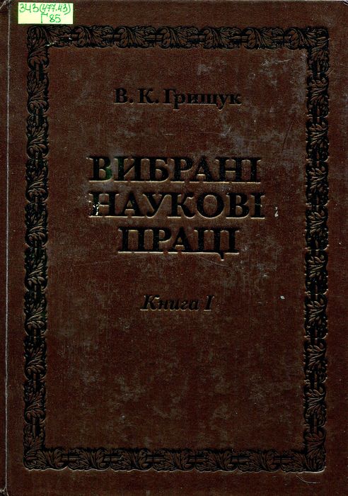 П1306-1 343(477.43) Г85 Грищук В. К. Вибрані наукові праці : у 4 кн. Кн. 1 / В. К. Грищук ; Хмельниц. ун-т упр. та права ім. Л. Юзькова. – Вінниця : Твори, 2025. – 984 с. Видання відкриває передмова «Життєпис про мого вчителя Віктора Климовича Грищука» Олега Омельчука, доктора юридичних наук, професора, академіка АНВО України, ректора Хмельницького університету управління та права імені Леоніда Юзькова, а далі у двох розділах розповідається про історію та теорію держави і права та про кримінальне право і кримінологію.