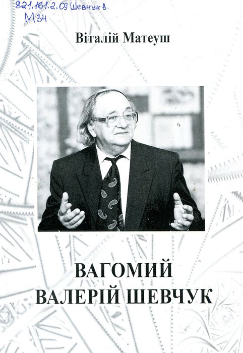 А47777 821.161.2.09(477.43) М34 Матеуш В. О. Вагомий Валерій Шевчук / В. О. Матеуш. – Хмельницький : Цюпак А. А., 2025. – 40 с. У виданні хмельничанина опубліковані і прокоментовані деякі листи та поезія Валерія Шевчука, письменника-шістдесятника, літературознавця із м. Житомир, до автора