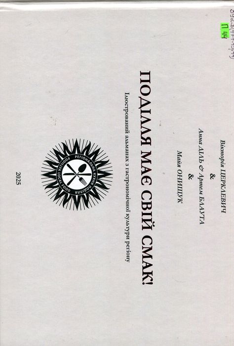 А47756 392.8(477.43/.44) П44 Поділля має свій смак! = Podillia has its own Taste! : іл. альм. з гастроном. культури регіону / авт.-упоряд.: В. Церклевич, А. Діль, А. Блаута та ін. – Хмельницький : Федоченко С. О., 2025. – 152 с. : фот. кольор. Видання є підсумком двадцятип’ятирічної роботи засновників і команд ресторанів «Південна Брама» та «Ресторація Шпігеля» в царині досліджень, розробки, практичного впровадження та просування локальної кухні Поділля, Хмельницького та Хмельницької області.