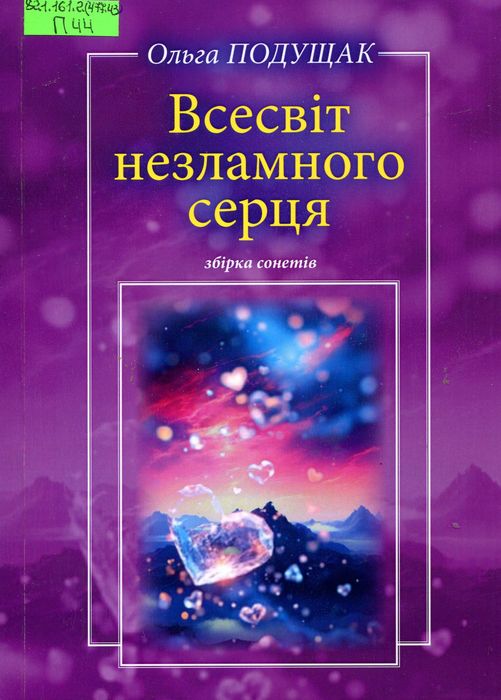 А47812 821.161.2(477.43) П44 Подущак О. Всесвіт незламного серця : зб. сонетів / О. Подущак. – Харків : Майдан, 2025. – 82 с. У виданні авторки із с. Рокитне, що на Ізяславщині, вміщені сонети на філософську, громадянську, любовну лірику.