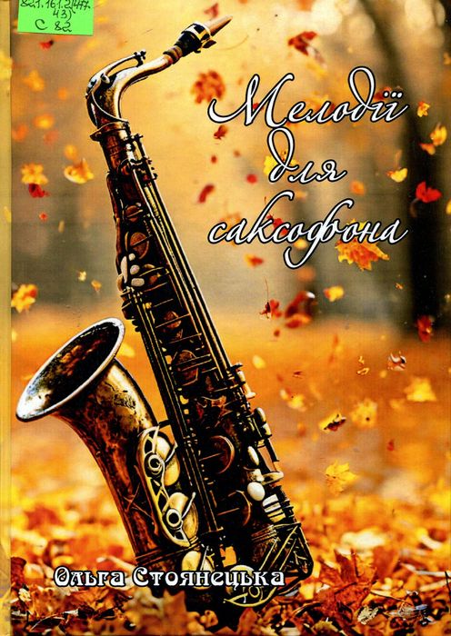 Б52609 821.161.2(477.43) С82 Стоянецька О. П. Мелодії для саксофона : поезії, присвяти, пісні / О. П. Стоянецька. – Хмельницький : Мельник А. А., 2024. – 244 с. Це шістнадцята поетична збірка авторки з Деражні, яка є передруком четвертої книги «Ще дзвони полудня не били», виданої у 2003 році, змінена, доповнена новими поезіями і містить тексти пісень і присвяти.