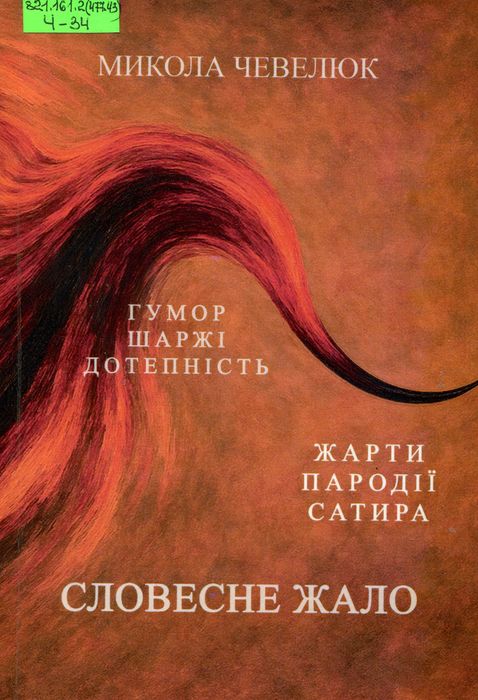 А47800 821.161.2(477.43) Ч-34 Чевелюк М. В. Словесне жало : пародії, гуморески, жарти / М. В. Чевелюк. – Хмельницький : Стасюк Л. С., 2025. – 144 с. : фот. У дев’ятій книзі автора із с. Ліски, що на Білогірщині, вміщені пародії, гуморески, шаржі, жарти, сатира, дотепність.