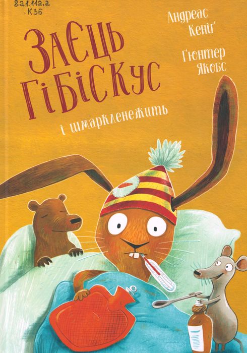 821.112.2 К35 Кеніг, Андреас. Заєць Гібіскус і шмаркленежить / А. Кеніг ; пер. з нім. О. Сидор ; худож. Г. Якобс. – Харків : Жорж, 2025. – 32 с. : іл. кольор. – (Заєць Гібіскус) (Час із книгою). Ведмедик Том занедужав. l сталося це саме тоді, коли друзі планували разом пограти у футбол. Заєць Гібіскус негайно бере справу у свої лапи і мчить в аптеку. Та поки він опікується хворим, сам мимохіть стає пацієнтом. Його друзі помилково вирішили, що це він застудився, і почали лікувати всіма відомими їм способами: морквяним супом, трав’яним чаєм, гарячими ванночками… А як же Том? lноді найкращими ліками можуть стати дружня підтримка та сміх.