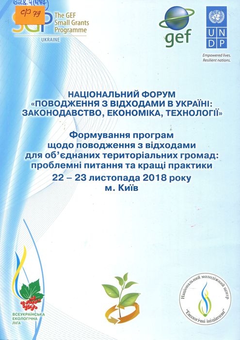 П1242-2018 628.4(477) Ф79 Формування програм щодо поводження з відходами для об`єднаних територіальних громад: проблемні питання та кращі практики : зб. матеріалів Нац. форуму "Поводження з відходами в Україні: законодавство, економіка, технології", м. Київ, 22-23 листоп. 2018 р. / Всеукр. еколог. ліга, Нац. форум "Поводження з відходами в Україні: законодавство, економіка, технології". - Київ : Центр еколог. освіти та інформ., 2018. - 205 с. У збірці вміщено матеріали Нацональногого форуму "Поводження з відходами в Україні: законодавство, економіка, технології». Ключова тема – формування програм щодо поводження з відходами для об’єднаних територіальних громад: проблемні питання та кращі практики. Доповіді учасників висвітлюють весь спектр питань, пов’язаних з кращими практиками щодо поводження з відходами в об’єднаних територіальних громадах, законодавчим регулюванням сфери поводження з відходами, інформаційною політикою та розвитком освітніх програм, спрямованих на підвищення рівня обізнаності населення щодо поводження з відходами. Особливо актуальними є доповіді, в яких представлено напрацювання українських вчених та винахідників щодо безпечних для довкілля технологій утилізації відходів. Матеріали збірки будуть корисними для науковців, представників органів державної влади та місцевого самоврядування, бізнесу, громадськості, студентів вищих навчальних закладів.