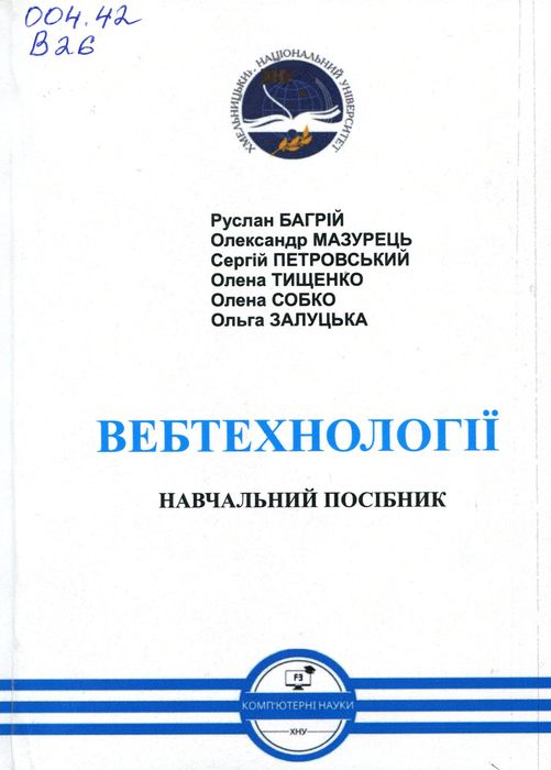 А47925 004.42 В26 Вебтехнології : навч. посіб. / Р. О. Багрій, О. В. Мазурець, С. С. Петровський [та ін.]. – Хмельницький : ХНУ, 2025. – 378 с. Навчальний посібник з дисципліни «Вебтехнології» має на меті надання комплексного розуміння основних принципів та інструментів веброзробки. Він поєднує в собі теоретичний матеріал з практичними завданнями для лабораторних занять та самостійної роботи, спрямованими на вдосконалення навичок у програмуванні, дизайні та архітектурі вебдодатків. Для здобувачів першого (бакалаврського) рівня вищої освіти, які навчаються за освітньо-професійними програмами в межах спеціальності «Комп’ютерні науки».
