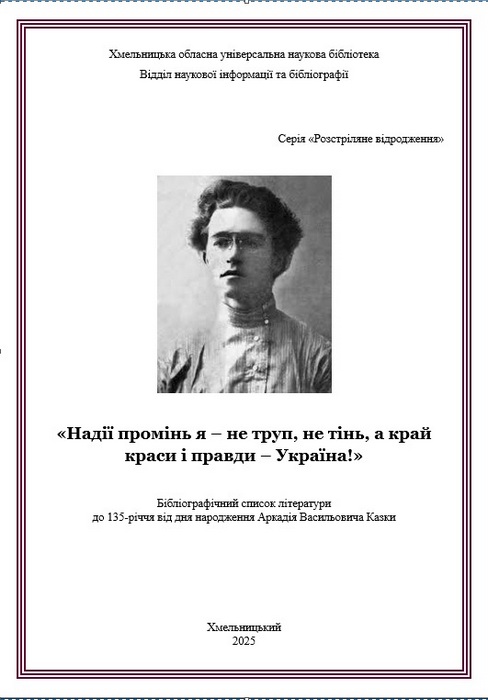Поповнено розділ «Наші видання» бібліографічним списком літератури до 135-річчя з дня народження Аркадія Васильовича Казки.