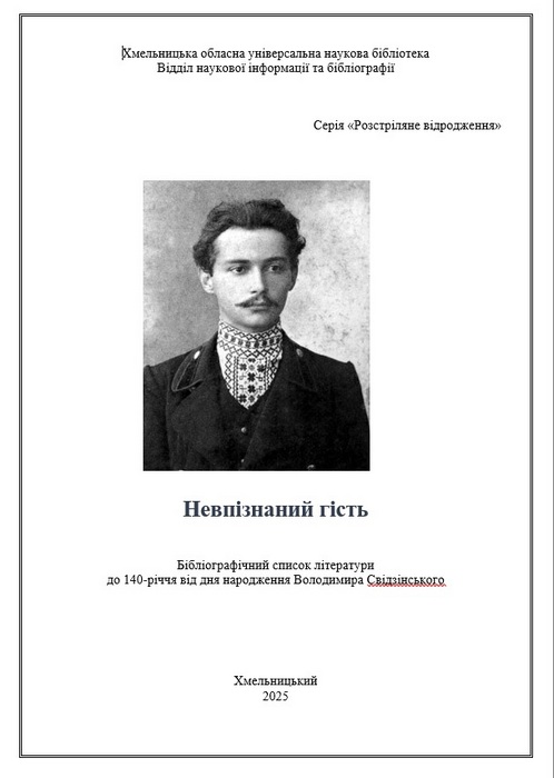 Поповнено розділ «Наші видання» бібліографічним списком літератури до 140-річчя від дня народження Володимира Свідзінського.