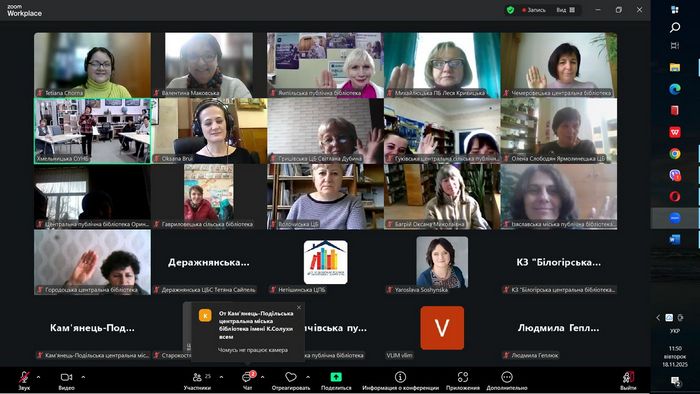 В обговоренні взяли участь: президентка ВГО Українська бібліотечна асоціація Оксана Бруй, виконавча директорка ВГО Українська бібліотечна асоціація Оксана Сошинська, члени Президії ВГО Українська бібліотечна асоціація Тетяна Чорна та Наталя Петренко, члени Президії Хмельницького обласного відділення Олена Айвазян, Валентина Черноус, Валентина Маковська, директор Хмельницької обласної бібліотеки для молоді Вікторія Задорожна.