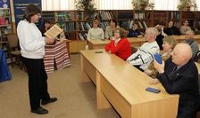 Вітання линули і від директорки бібліотеки Катерини Чабан, яка подарувала гостю рекомендаційний бібліографічний довідник «Календар знаменних і пам’ятних дат Хмельниччини», де вміщена інформація про Славка та стаття про нього, яку написав Віталій Міхалевський.