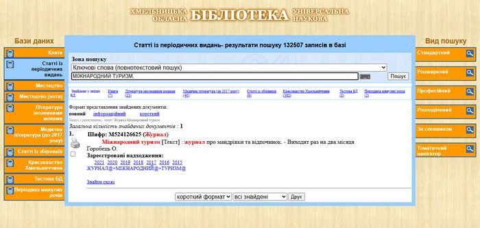 Долучитися до кола читачів даного видання і поринути у світ фантастичних і незабутніх пригод просто як ніколи, адже всі журнали «Міжнародний туризм» зібрані на одному сайті. У фондах Хмельницької обласної універсальної наукової бібліотеки журнал з 2015 року.