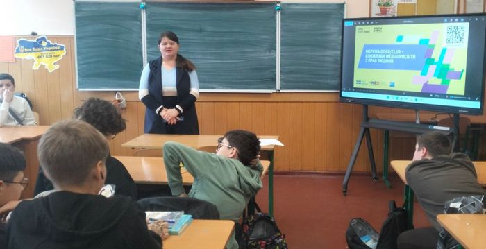 «Люди, які допомагають» – тема дискусії виїзного засідання кіноклубу Docudays UA «Право в обєктиві» з нагоди Дня волонтера для здобувачів освіти комунального закладу загальної середньої освіти «Ліцей № 17 Хмельницької міської ради» за участю Альона Радецька, поетеси, заступниці голови Хмельницька обласна організація Національної спілки письменників України, членкині Національна спілка письменників України НСПУ.