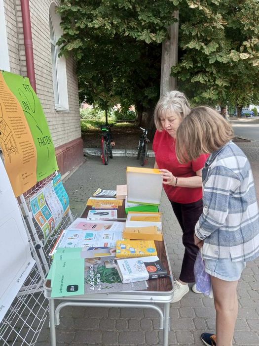 «Fit in Fakten» - проєкт з підвищення медіаграмотності серед інформаційно вразливих категорій населення, їх взаємодії та розвитку критичного мислення. Саме про це говорили сьогодні з відвідувачами літнього читального залу. В Україні проєкт реалізується Ґете-інститутом у партнерстві з науково-популярним медіа «Куншт», Фундацією розвитку інформаційного суспільства (Варшава), освітньою платформою Facts for Friends (Гамбург), бібліотечними асоціаціями Німеччини та України за підтримки МЗС Німеччини. Fit in Fakten — Playchecking (гра слів із перевіркою фактів) — це посилення медіаграмотності через альтернативні методи: ігри та вікторини. В процесі ігор, інших командних активностей, учасники можуть обмінюватись знаннями та досвідом. Бібліотека отримала комплект настільних ігор та постерів: «Якщо знаєш – помічаєш»; «Навігація у медіапросторі»; «Лото з медіа грамотності»; «Країна легенд»; «Інформаційний лабіринт»; «Медіа-млин»; «Намалюй свій знак». У бесідах з молоддю акцент було зроблено на одній із топ-тем сьогодення - спробах російських спецслужб розгорнути мережу орієнтованих на молодь каналів у соцмережах та месенджерах, які закликають до вчинення диверсій та терактів в Україні. Отож, запрошуємо до книгозбірні поспілкуватися, почитати, а також підвищити обізнаність у питаннях дезінформації та медіаграмотності.