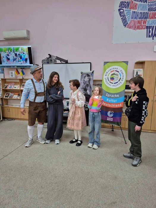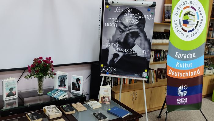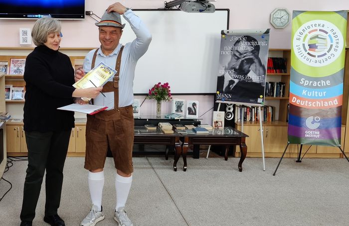 Відбувся День відкритих дверей громадської організації Товариство Німців Хмельниччини – Відергебурт - партнера Хмельницької обласної універсальної наукової бібліотеки.  Під час заходу гості мали можливість ознайомитися з напрямками діяльності товариства та ініціативами, які реалізуються у співпраці з обласною книгозбірнею, адже Хмельницька ОУНБ - бібліотека-партнер Гете-інституту в Україні рамках проєкту «Мова. Культура. Німеччина». Зокрема, було представлено курси з вивчення німецької мови для дорослих і дітей, діяльність дитячого театрального гуртка, а також спільні соціокультурні заходи, спрямовані на популяризацію німецької мови та культури в регіоні. Бібліотека представила огляд життя та творчості видатного німецького письменника Томаса Манна, 150-річчя від дня народження якого відзначається у 2025 р., книжкову виставку його творів німецькою та українською мовами. За багаторічну співпрацю в культурно-освітніх проєктах, популяризацію німецької мови і культури та з нагоди Всеукраїнського Дня бібліотек голові Товариства Володимиру Бауеру вручено подяку від директора бібліотеки Катерини Чабан. Захід пройшов у дружній атмосфері, об’єднавши всіх, хто цікавиться німецькою мовою, історією та традиціями етнічних німців України.
