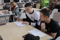 Заняття з німецької мови для початківців з волонтеркою Софією Волошиною: закріплювали пройдений матеріал – повторювали лексику на тему знайомств, тренували відмінювання дієслів в теперішньому часі для всіх осіб, виконували підстановчі вправи для заповнення інформації про себе в анкетах.