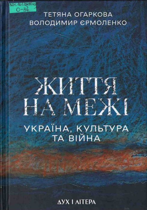Б52622 821.161.2(477.43) О-36 Огаркова Т. Життя на межі: Україна, культура та війна / Т. Огаркова, В. Єрмоленко. – Київ : ДУХ І ЛІТЕРА, 2025. – 256 с. – (Державна програма – 2025). Це книга, яка народилась з волонтерських та журналістських поїздок авторів, Володимира Єрмоленка та Тетяни Огаркової. Її жанр можна визначити як філософський репортаж. Вона є спробою осмислення реальності цієї війни, тих засадничих понять, на які спирається людське буття, осмислення того, як ці поняття постають для людей, долі яких змінила війна.