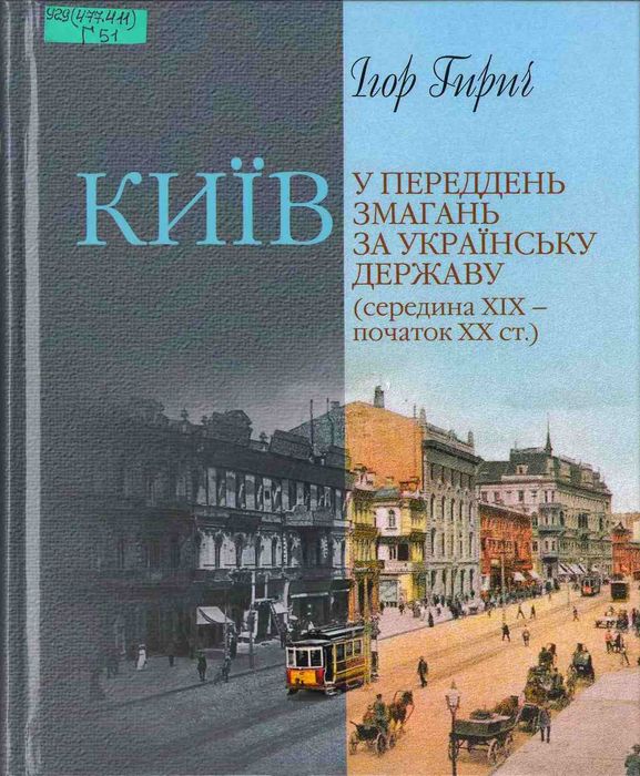 А47839 929(477.411) Г51 Гирич І. Б. Київ у переддень змагань за українську державу (середина XIX – початок XX ст.) / І. Б. Гирич. – Київ : Кліо, 2025. – 320 с. : фот. – (Державна програма – 2025). Книга розповідає про людей, які були елітою українського суспільства середини ХIХ – початку ХХ ст. Людей, які підготували ґрунт для Української революції 1917–1921 рр. Біографії киян-інтелектуалів структуровано за фаховою належністю: політики, історики України, історики права, церковні історики, літературознавці, священники, кооперативні діячі; крім того, подано розповіді про освітні заклади, де самовіддано працювали герої цієї книги. Автор оцінює внесок науковців у скарбницю національної історіографії та додає адреси їхнього мешкання в Києві протягом життя.
