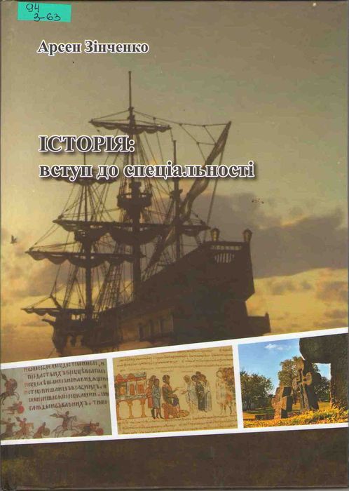 Б52661 94 З-63 Зінченко А. Л. Історія: вступ до спеціальності : навч. посіб. / А. Л. Зінченко. – Вінниця : Меркьюрі-Поділля, 2014. – 236 с. : фот. У навчальному посібнику окреслюються предмет і завдання історії як науки, основні етапи її розвитку; розкрито призначення основних історичних дисциплін. Розглядаються особливості професії, суспільне покликання історика як фахівця й громадянина, подано матеріали, що сприятимуть формуванню у студента інтересу до вивчення історичних джерел, усвідомленню значення діяльності історика в плеканні історичної, культурної та екологічної свідомості.