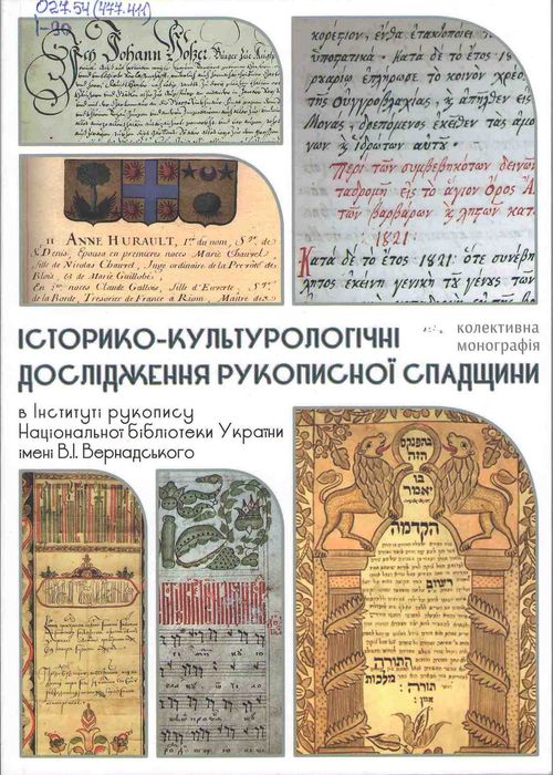 Б52658 027.54(477.411) І-90 Історико-культурологічні дослідження рукописної спадщини в Інституті рукопису Національної бібліотеки України імені В. І. Вернадського : монографія / НАН України, Нац. б-ка України ім. В. І. Вернадського ; авт. кол.: Т. О. Батанова, О. П. Бодак, С. О. Булатова [та ін.]. – Київ : [б. в ], 2024. – 420 с. : фот. Монографія репрезентує результати історико-культурологічних досліджень рукописної спадщини, що зберігається у фондах Інституту рукопису Національної бібліотеки України імені В. І. Вернадського, напрацьовані науковцями підрозділу. Різноплановий зміст видання охоплює широке коло питань з вивчення рукописної історико-культурної спадщини України та світу, висвітлених у низці студій з кодикологічної, археографічної та документознавчої проблематики. Підсумки діяльності Інституту рукопису НБУВ за 2022–2024 рр. представлені в Додатках, що містять, зокрема, аналітичну розвідку про публікаційну активність фахівців Інституту як спосіб наукової комунікації, супроводжувану бібліографічним покажчиком; авторські дописи з інформацією про популяризаторську роботу підрозділу, про електронні інформаційні ресурси, створені на рукописні фонди, тощо.