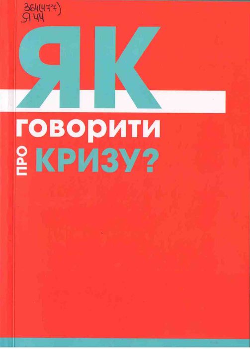 А47863 364(477) Я44 Як говорити про кризу? : посіб. з кризових комунікацій. – [б. м.] : [б. в.], 2017. – 93 с. : фот. Посібник допоможе швидко опанувати головні правила кризової комунікації, а найголовніше – підготуватися до неї заздалегідь. Цей посібник допоможе уникнути комунікаційних колапсів як усередині команди, так і в зовнішній комунікації. У ньому наводяться приклади криз та їх успішного подолання, а також шаблони документів, що можуть знадобитися в процесі будування комунікації зі ЗМІ й громадськістю. Під час кризи він допоможе чітко розподілити зони відповідальності між працівниками й перетворити команду на ефективний антикризовий штаб.
