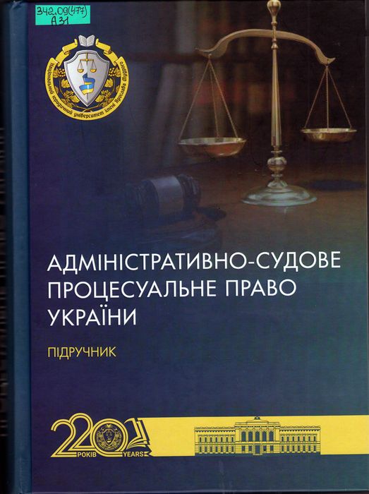 Б52600 342.09(477) А31 Адміністративно-судове процесуальне право України : підручник / Нац. юрид. ун-т ім. Ярослава Мудрого ; за заг. ред. Д. В. Лученка. – Харків : Нац. юрид. ун-т ім. Ярослава Мудрого, 2024. – 696 с. Підручник є навчальним виданням, заснованим на новому концептуальному підході до визначення галузі права, яке регулює в Україні адміністративне судочинство. У ньому визначено предмет, метод, систему адміністративно-судового процесуального права, його місце в системі національного права України. Розкрито зміст усіх процесуальних категорій, встановлено структуру адміністративного судочинства з детальним описом процесуальних дій суду й учасників судового процесу на кожній із його стадій, виокремлено форми процесуальної діяльності адміністративних судів тощо. Наведено порівняльний аналіз адміністративного судочинства з іншими видами судочинства, встановлено співвідношення адміністративного судочинства й адміністративної процедури. Видання орієнтовано на опанування студентами закладів вищої освіти юридичного профілю навчального курсу «Адміністративне судочинство», суміжних і пов’язаних із ним навчальних дисциплін, також буде корисним як аспірантам, викладачам та ученим-правознавцям, так і суддям, іншим публічним службовцям, адвокатам і всім, хто цікавиться питаннями адміністративного судочинства.