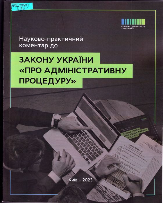 Б52601 342.9(477) Н34 Науково-практичний коментар до Закону України «Про адміністративну процедуру» / авт. кол. : О. Ф. Андрійко, В. М. Бевзенко, Т. О. Гуржій [та ін.]. – Київ : [б. в ], 2023. – 562 с. Науково-практичний коментар до Закону України «Про адміністративну процедуру» (далі – ЗАП) покликаний допомогти публічним службовцям та іншим фахівцям у практичному застосуванні Закону. Потреба у такій праці особливо гостра, зважаючи на суттєву новизну регулювання загальної адміністративної процедури для України. У коментарі розкривається нова для українського законодавства термінологія, конкретні норми та їх зв’язок з принципами адміністративної процедури, а також у цілісному механізмі правового регулювання. Особлива увага приділяється поясненню мети кожної норми, наводяться приклади та моделі застосування відповідних норм з посиланням на поточну практику, а також на закордонний досвід та вихідні джерела м’якого права (зокрема, акти Ради Європи). До авторського колективу з підготовки цього видання були залучені передусім фахівці, які брали безпосередню участь у розробленні законопроєкту «Про адміністративну процедуру» у складі відповідної робочої групи Міністерства юстиції, а згодом – при доопрацюванні ЗАП у робочій групі профільного парламентського комітету.
