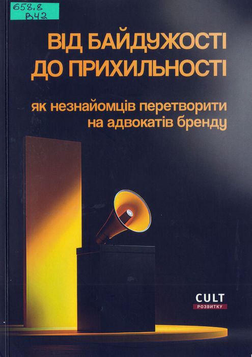 А47782 658.8 В42 Від байдужості до прихильності : як незнайомців перетворювати на адвокатів бренду / упоряд. І. Горбунова. – Кам’янець-Подільський : Панькова А. С., 2025. – 232 с. Ця книга – не про продажі, а про силу справжніх стосунків. Якщо ви експерт, блогер чи підприємець, якому набридла поверхнева взаємодія з підписниками, ця книга покаже, як вибудовувати глибокі, довірливі зв’язки. Ви дізнаєтесь, як із перших дотиків у соцмережах формувати прихильність, долати кризи довіри, підтримувати клієнтів емоційно та перетворювати випадкових читачів на адвокатів бренду.