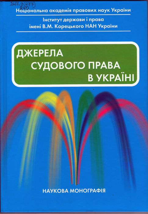 Б52605 347.9(477) Д40 Джерела судового права в Україні : монографія / Нац. акад. правових наук України, Ін-т держави і права ім. В. М. Корецького ; кер. авт. кол. А. О. Селіванов. – Київ : Фенікс, 2024. – 296 с. В цій науковій колективній монографії взяли участь талановиті вчені та практики юристи з висновками відносно додаткових регуляторів у правовій системі України. Автори виходили з власного досвіду і правових знань, щоб допомогти вченим і практикуючим юристам побачити перспективи розвитку судового права, суддям відмовитись від догм і в «боротьбі за право» довести існування джерел судового права. Монографія четверта із серії колективних монографій, присвячених актуальним питанням розвитку правового життя, а плідна творча єдність вчених і практиків дала результати.