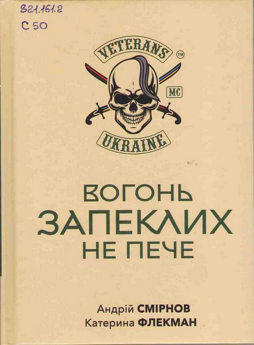 А47929 821.161.2 С50 Смірнов А. Вогонь запеклих не пече / А. Смірнов, К. Флекман. – Київ : Артіль, 2026. – 192 с. : фот. – (Державна програма – 2025). Братерство військових неможливо описати декількома словами. Це ядерна емоційна суміш, яку не варто аналізувати, бо вона зачіпає на тому рівні, де слова стають зайвими. Коли незнайомі військові зустрічаються поглядами, вони миттєво впізнають один одного. Чому? Бо досвід бойових дій залишається там, в цих очах. І це не про сум чи ПТСР, це про титанову силу чоловіків, що пройшли випробування війною. Братерство військових. Братерство ветеранів. Братерство байкерів. Люди, назавжди поєднані війною. Чоловіки, які мають таку концентрацію адреналіну в крові, що разом перетворюються на непохитну рушійну силу будь-якого процесу. Титанові воїни на залізних конях – це Спарта нашого часу, яка має назву – Veterans MC Ukraine.