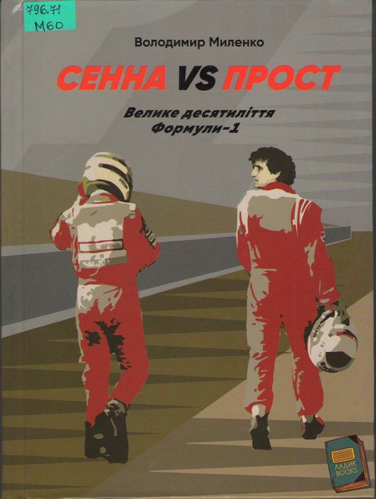 А46691 796.71 М 60 Миленко Володимир (Олесь Дзига). Сенна vs Прост. Велике десятиліття "Формули-1": . / В. Миленко. - Кам`янець-Подільський : Абетка, 2023. - 432 с. У своїй новій книжці Володимир Миленко розкриває зовсім нову тему - тему головної автоспортивної серії світу, «Формули-1». Протистояння двох легенд автоспорту, француза Алена Проста та бразильця Айртона Сенни, історія кожної спільної гонки цих пілотів - про це, а також про загальну ситуацію у Королівських гонках 80-90-х йдеться у виданні «Сенна vs Прост. Велике десятиліття «Формули-1».