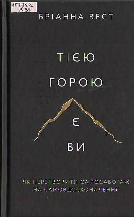 А47502 159.923 В38 Вест Б. Тією горою є ви. Як перетворити самосаботаж на самовдосконалення / Б. Вест ; пер. з англ. А. Токарик. – Київ : Букшеф, 2025. – 208 с. Суперечливі потреби, які є в кожного з нас, створюють самосаботажну поведінку. Ось чому ми підсвідомо протидіємо усім спробам змінитися. Однак якщо ви маєте достатньо сили волі й готові керувати своїм життям, цьому можна зарадити. Вам потрібно збагнути, як діють наші найшкідливіші звички, розвинути емоційний інтелект, ліпше зрозуміти свої мозок і тіло, звільнитися від минулого досвіду й перетворити самосаботаж на самовдосконалення. Зробити це допоможе бестселер «Тією горою є ви». Століттями образ гори використовували як метафору викликів, з якими ми стикаємося, особливо тих, що видаються нездоланними. Проте найчастіше цією горою є не зовнішні перепони, а внутрішні. Тож, щоб підкорити нашу гору, ми маємо виконати глибоку внутрішню роботу з розкопування травми, формування стійкості та коригування сходження. Усьому цьому навчає Бріанна Вест, яка вміє коротко і влучно пояснити, як керувати своїм життям і підкорити не уявну гору, а самих себе.