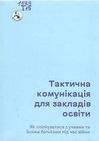 А47548 159.9 Т15 Тактична комунікація для закладів освіти. Як спілкуватися з учнями та їхніми батьками під час війни / ред. Я. Сабляш. – 4-те вид. – [б. м.] : [ б. в.], [2024]. – 36 с. Посібник про те, як підтримувати себе і тих, хто навколо, під час війни. Мета – згуртоване суспільство, де кожен відчуває себе серед своїх, може отримати допомогу, справлятися сам і надавати допомогу тим, кому це потрібно.