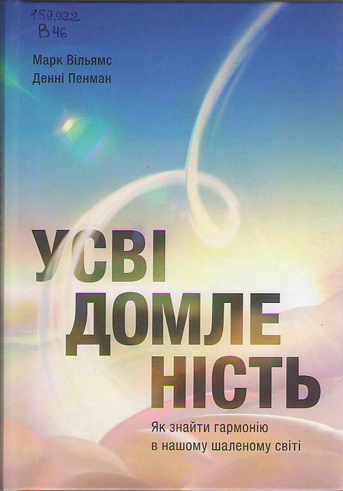 Б52498 159.922 B46 Вільямс М. Усвідомленість. Як знайти гармонію в нашому шаленому світі : практ. посіб. / М. Вільямс, Д. Пенман ; пер. з англ. М. Коваленко. – Харків : Моноліт Бізз, 2025. – 256 с. Практика усвідомленості на Заході давно рятує мільйони людей від хронічного стресу і депресії, чи не найпоширеніших недуг сучасного світу. Сьогодні і в Україні вона стрімко стає популярною. Одним із фундаторів «терапії усвідомленості» є професор Марк Вільямс. Разом із доктором Денні Пенманом вони створили цю книжку, яка вже майже десятиліття є визнаним міжнародним бестселером. Що й не дивно: науково і клінічно доведено, що застосування методик, описаних Марком Вільямсом та Денні Пенманом, позитивно впливає на здоров’я, відчуття благополуччя та щастя людини. Це практичний посібник. Тут запропонована восьмитижнева покрокова програма досягнення гармонії з самим собою та навколишнім світом. Водночас книжка доповнена унікальними аудіовправами, які допоможуть правильно виконувати медитації. Це ваш шанс повернутися на свій «життєвий шлях» і насолоджуватися кожним днем.