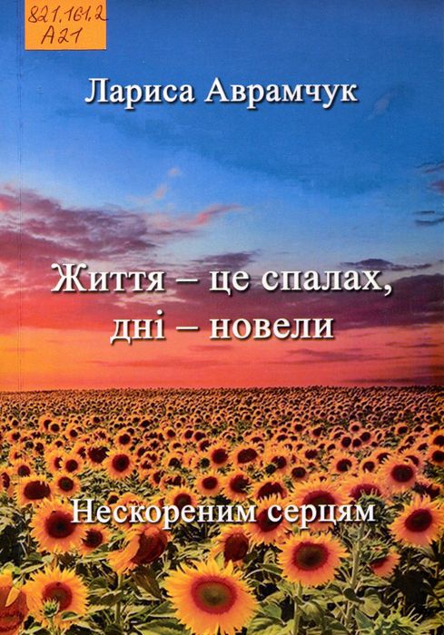 А47908 821.161.2 А21 Аврамчук, Лариса Антонівна. Життя - це спалах, дні - новели. Нескореним серцям : / Л. А. Аврамчук. - Хмельницький : Стасюк Л. С., 2025. - 160 с. Ця книга Лариси Аврамчук(Ш.Є.) являється другою збіркою, до якої увійшли поезії, написані протягом повномасштабного вторгнення ворога в Україну. Думки, відчуття, переживання, викликані спільним з народом горем, знайшли своє відображення у поезіях – перші місяці війни, втрата близьких і знайомих. Криваві бої за Київ, посвяти і життєпис у віршах Героїв 14 ОМБ ім. князя Романа Великого, які загинули в бою в селі Дмитрівка. Почуття скорботи і вдячності, болю і шани, прославлення героїчних подвигів воїнів і мирного населення.