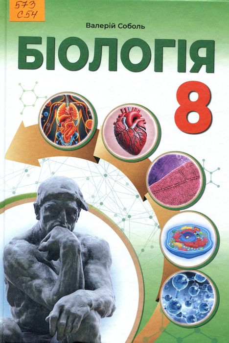 Б52690 573 С54 Соболь, Валеpiй Iванович. Біологія : підруч. для 8 кл. / В. І. Соболь. - Кам`янець-Подільський : Абетка, 2025. - 280 с. Підручник з біології для 8 класу дасть змогу вивчити будову та поведінку людини, а також її життєдіяльність. Перед вивченням навчальних матеріалів, потрібно зрозуміти що людина істота не тільки біологічна але й соціальна. Кожна людина відрізняється зовнішніми ознаками, характером, здібностями, має різні таланти і є неповторним творінням природи. І хоча із точки зору біології людина – це система органів, кожен з яких в свою чергу складається із клітин, та в соціальному аспекті кожна людина – це індивідуальність, що відрізняється внутрішнім світом і основним покликанням якої є творити. Для досягнення кращих результатів краще починати з самого себе, адже, як говорить давня істина «Пізнаючи себе ти пізнаєш світ». Краще пізнання власного організму дасть можливість підвищити свою успішність, стати щасливим і розвинути в собі повагу до інших людей.