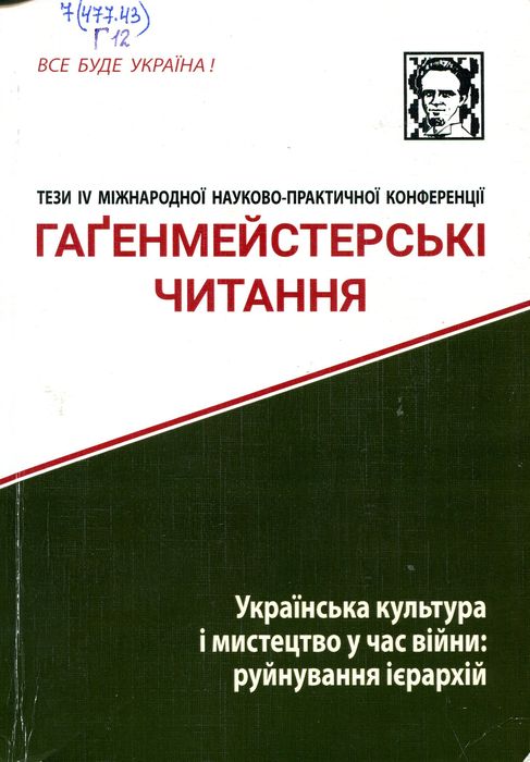 А44983-4(2025) 7(477.43) Г12 Гагенмейстерські читання : тези доп. ІV Міжнар. науково-практ. конф. м. Кам’янець-Подільський, 5- 6 груд. 2024 р. : Українська культура і мистецтво у час війни: руйнування ієрархій / Кам’янець-Поділ. нац. ун-т ім. Івана Огієнка ; редкол.: С. Копилов, Н. Урсу, Р. Шмагало та ін. ; упоряд. С. В. Луць. – Кам’янець-Подільський : Панькова А. С., 2024. – 252 с. Видання вміщує переднє слово «Мистецтво – соціальний ресурс у часи війни» Анастасії Токарської, викладачки кафедри соціально-гуманітарних наук Львівської національної академії мистецтв і три розділи: «Культурно-мистецька спадщина», «Мистецька освіта і педагогіка», «Мистецтво і дизайн», де вміщені наукові статті викладачів, здобувачів освіти, музейників України, зокрема, Кам’янеччини.
