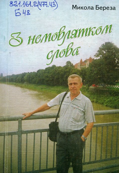 А47802 821.161.2(477.43) Б48 Береза М. П. З немовлятком слова : поезії / М. П. Береза. – Рівне : Волин. обереги, 2003. – 72 с. У книгу ввійшли вірші, написані в різні роки. Тут і роздуми про сьогоднішній день України, і тривога за долю рідного слова, і роздуми про отчий дім, його красу.