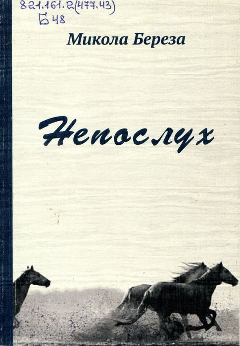 А47788 821.161.2(477.43) Б48 Береза М. П. Непослух: новели / М. П. Береза. – Рівне : Волин. обереги, 2019. – 208 с. У виданні вміщені новели та образки, в яких автор відобразив картини недавнього і теперішнього життя українців, у прозовій формі описав характери земляків.