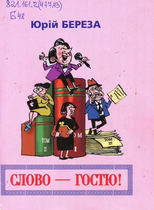 А47803 821.161.2(477.43) Б48 Береза Ю. П. Слово – гостю! / Ю. П. Береза ; худож. В. Чмирьов. – Київ : [б. в.], 2018. – 64 с. : іл. – (Бібліотека журналу «Перець». Весела республіка» ; № 18-2018). У виданні вміщені замальовки, гумор, сатира, влучні вислови сміхотливого характеру.