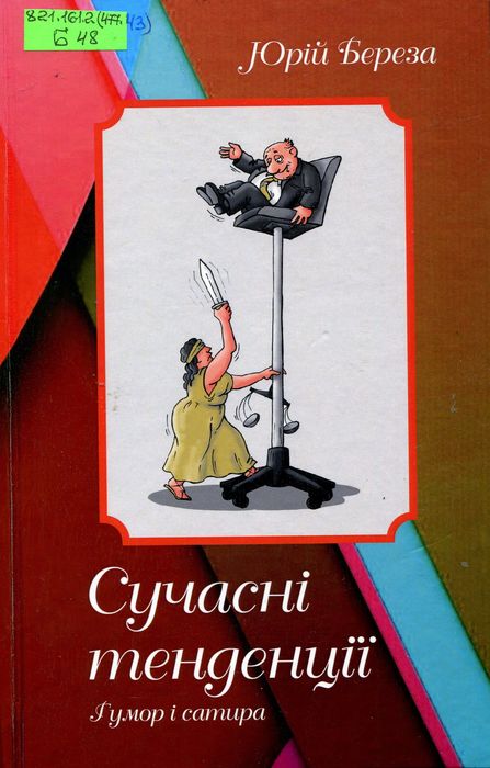 А47793 821.161.2(477.43) Б48 Береза Ю. П. Сучасні тенденції : гумор і сатира / Ю. П. Береза. – Рівне : Волин. обереги, 2020. – 708 с. У книгу увійшли гумористично-сатиричні твори, написані впродовж останніх років.