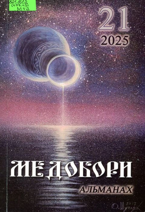 П994-21(2025) 821.161.2(477.43) М42 Медобори : альманах. № 21. 2025 / Хмельниц. обл. осередок Всеукр. творчої спілки «Конгрес літераторів України» ; ред.-упоряд. М. В. Чевелюк. – Хмельницький : Стасюк Л. С., 2025. – 328 с. : фот. У виданні вміщені твори, присвячені подіям сучасного світу, де йде війна. Також описано життя й діяльність Хмельницького обласного осередку на основі заходів, організованих і проведених членами спілки.