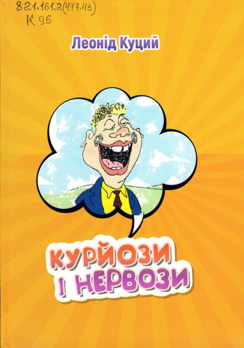 УДК 821.161.2(477.43) К95 Куций Л. М. Курйози та нервози : гумор і сатира у прозі. - 2-ге вид., доп. - Вінниця : Твори, 2022. - 104 с. Збірка гумору і сатири у прозі «Курйози і нервози» розповідає смішні історії, які письменник гуморист і сатирик Леонід Куций упродовж багатьох років занотовував до свого записника. Багато таких історій автор взяв із свого цивільного і військового життя.
