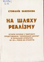 УДК 83.3(4ПОЛ) Б16 Баженова С.Е. На шляху реалізму. Історія України в творчості представників "української школи" в польській літературі 40-90-х років XIX століття / С. Е. Баженова ; Ін-т історії України НАН України; Кам`янець-Поділ. держ. ун-т; Центр досліджень історії Поділля. – Кам`янець-Подільський: [б. в.], 2006. – 260 с. У книзі викладено біографії та характеризується діяльність польських письменників Ю. Крпащевського, М. Крабовського, А. Марцинківського, Г. Жевуського, Ю. Ролле та інших, акцентовано увагу на їх внесок в суспільне-політичне життя Правобережної України.