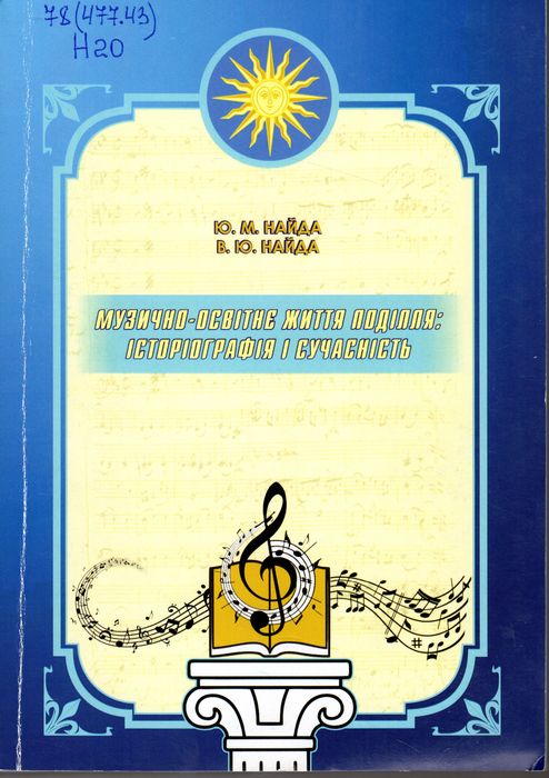 УДК 78(477.43) Н20 Найда Ю. М. Музично-освітнє життя Поділля: історіографія і сучасність: зб. вибр. наук. ст. / Ю. М. Найда, В. Ю. Найда ; М-во освіти і науки України, Хмельниц. гуманітарно-пед. акад. – Хмельницький : Цюпак А. А., 2023. – 490 с. Автори сподіваються, що збірка вибраних наукових статей буде корисна краєзнавцям, історикам, культурологам та іншим дослідникам проблем розвитку українського національного музично-освітнього життя Поділля від зародження до сучасного стану.