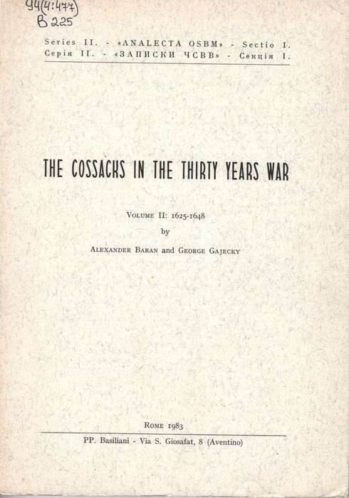 Baran A. The Cossacks in the Thirty War: 1625-1648, Vol. II, 1983. – 125 p.
