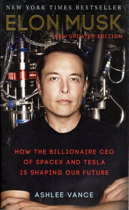 30ц V222 Vance, Ashlee. Elon Musk. How the Billionaire CEO of Spacex and Tesla is Shaping Our Future : biography / A. Vance. – New updated ed. – London : Virgin Books, 2016. – 402 p. «Ілон Маск. Tesla, SpaceX і шлях у фантастичне майбутнє» («Elon Musk. How the Billionaire CEO of Spacex and Tesla is Shaping Our Future») – чудовий, захоплюючий огляд бурхливого життя одного з найзухваліших бізнесменів Силіконової долини – Ілона Маска. Він народився в Південній Африці і став відомим підприємцем та новатором. Маск займається системами PayPal, SpaceX, Tesla та SolarCity. Він хоче врятувати нашу планету, хоче відправити громадян у космос, утворити колонію на Марсі, хоче заробляти гроші.